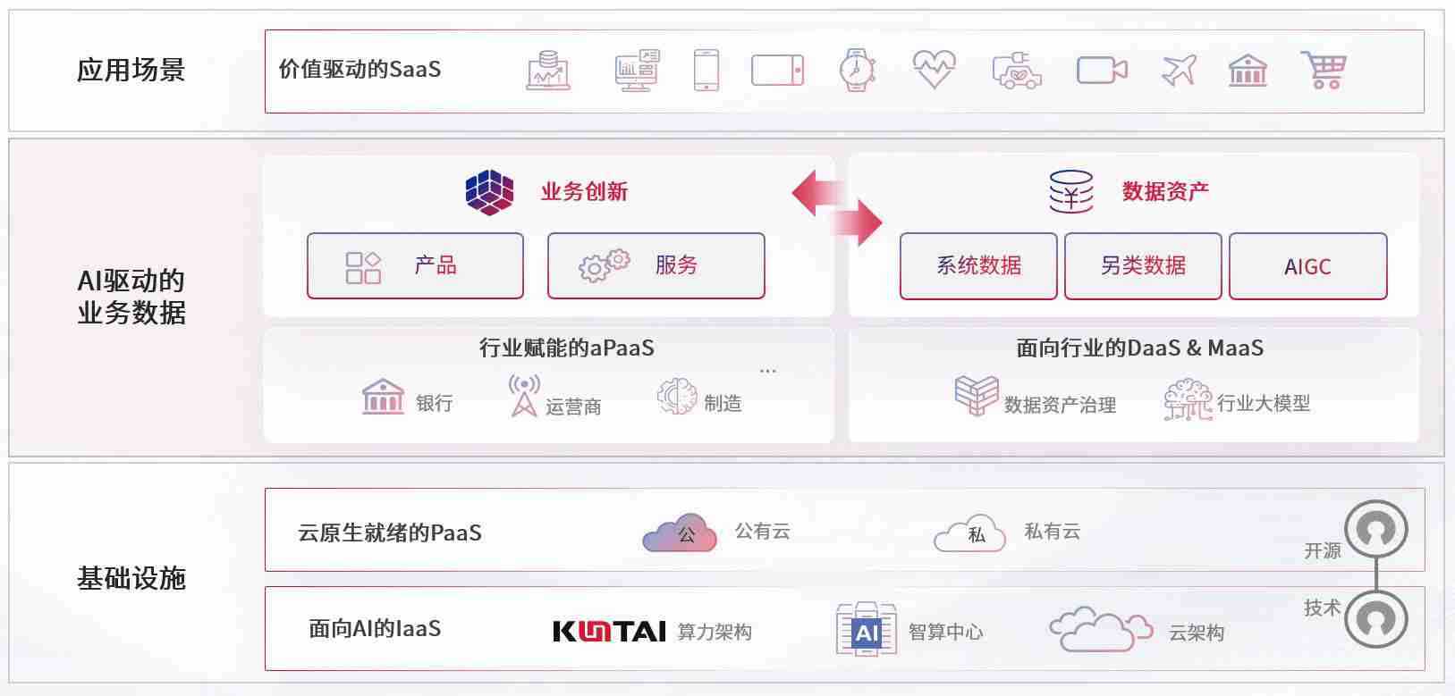 数字时代,,,,围绕企业数字化转型的关键要素,,,yaxin868数码开创性的提出数云融合战略和技术体系框架,,着力在云原生、、数字原生、、、、AI原生和信创产业上架构产品和服务能力,,为处在不同数字化转型阶段的快消零售、、汽车、、、金融、、、、医疗、、、、政企、、、教育、、运营商等行业客户提供泛在的敏捷IT能力和融合的数据驱动能力,,,构建跨界融合创新的数字业务场景和新业务模式,,助力企业级客户建立面向未来的核心能力和竞争优势,,全面推动社会的数字化、、智能化转型升级。。